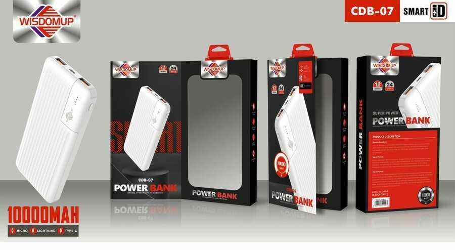 Power Bank Wisdomup 18W con Doppio Ingresso USB Type-C, Batteria Li-Polimero, Presa Universale