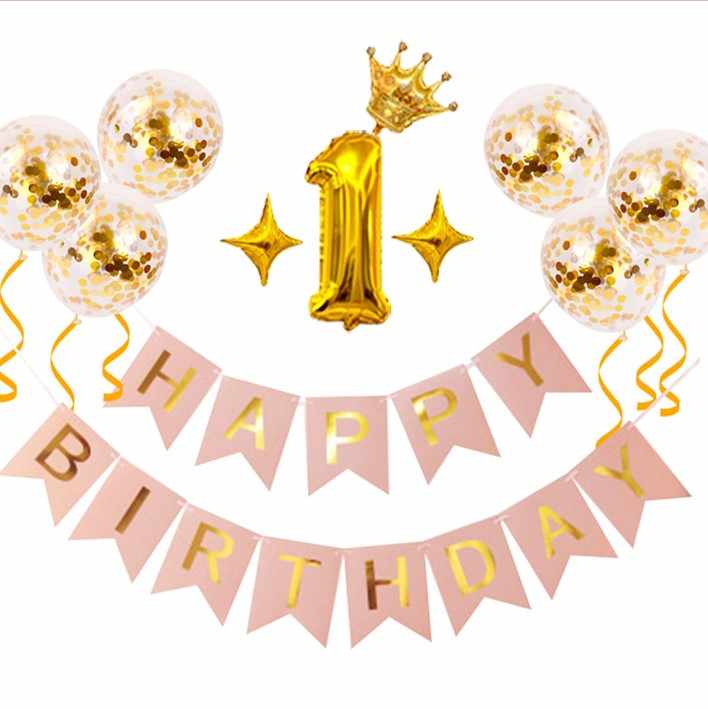 Wish Hot Sale 1st 2nd Birthday Party Decoration Supplies Rose Gold Pink Blue Happy Birthday Banner and Number 0-9 Foil Balloons