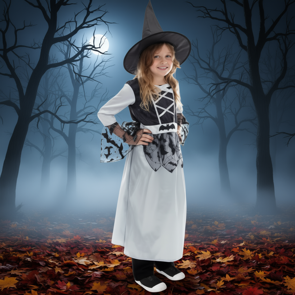 Costume da strega per ragazze taglia 10-12 Costume di Halloween in poliestere con cappello e mantello per bambini