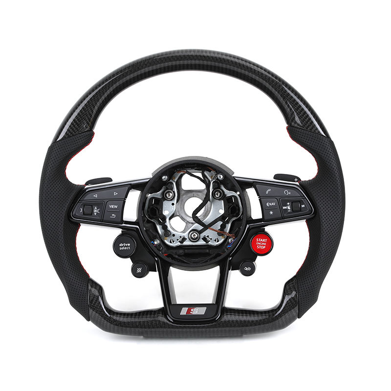 With R8 Button Half Perforated Leather Carbon Steering Wheel for Audi A3 A4 A5 A6 A7 S3 B9.5 S4 S5 B8 B9 RS3 RS5 RS7 Q7 Q5 SQ5