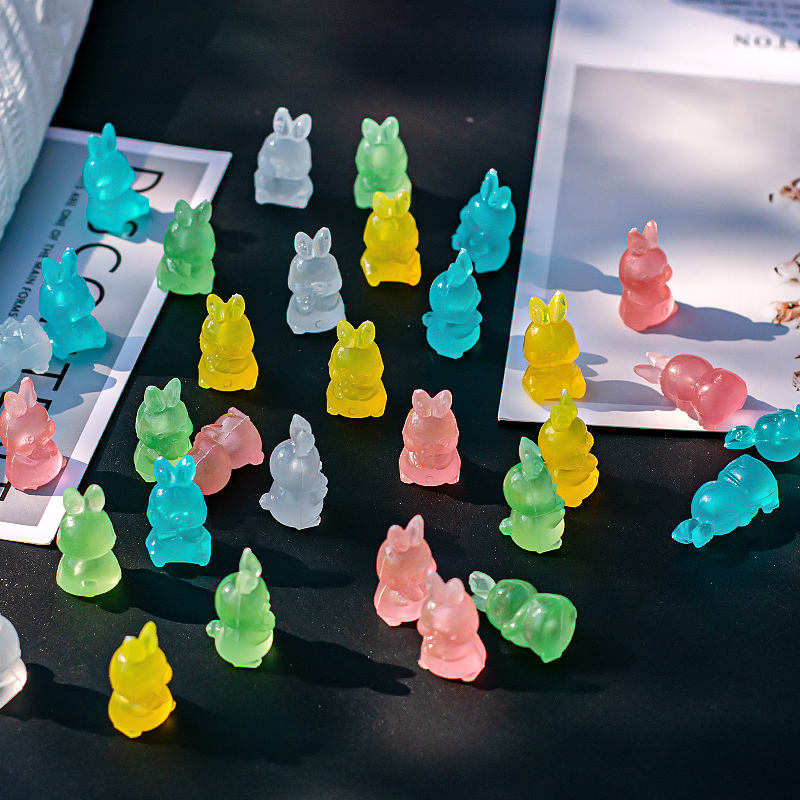 Wn Glow-in-the-Dark Rabbit Decoration Cute Fluorescent Midnight Landscape Garden Artificial Stone Aquariums Accessories