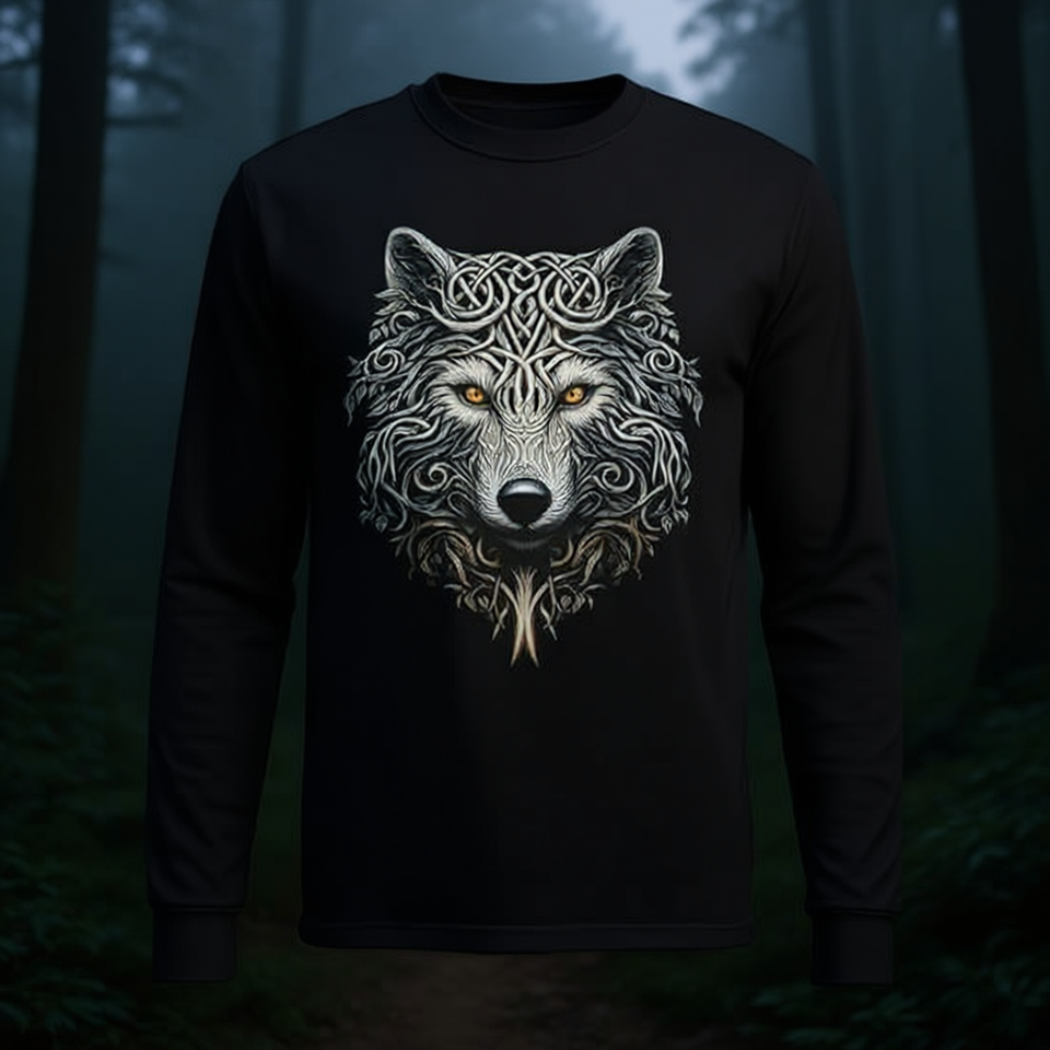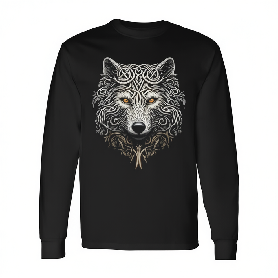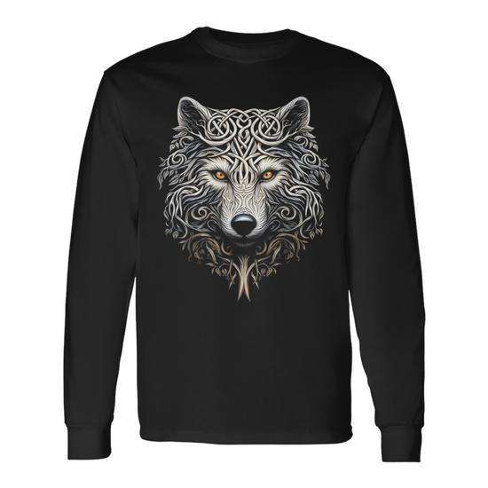 T-shirt a maniche lunghe con grafica Wolf Art, design Mandala per amanti degli animali