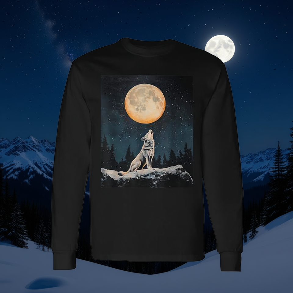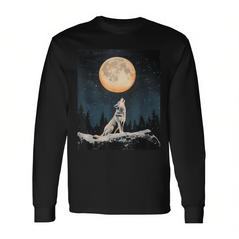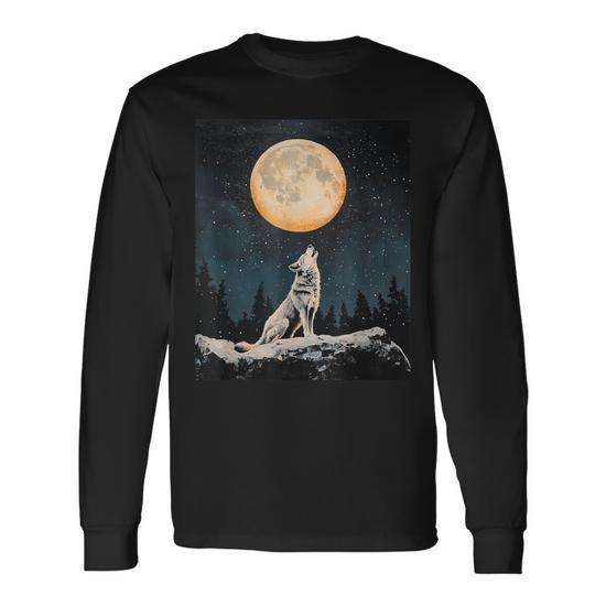 T-shirt a maniche lunghe con grafica Wolf Moon Starry Night
