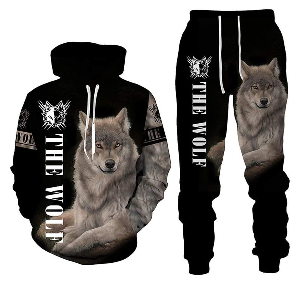 Felpa con stampa lupo felpa con cappuccio Set felpa a maniche lunghe e pantaloni della tuta con tasche