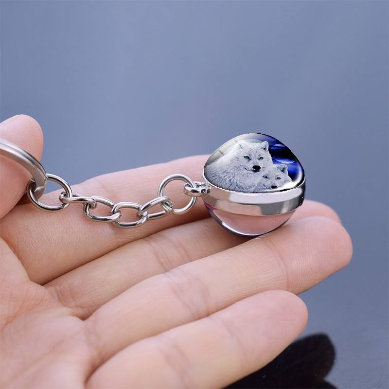 Lupo e la Luna Portachiavi Howling Wolf Side Double Glass Pendente della Sfera Portachiavi Lupo Testa Gioielli