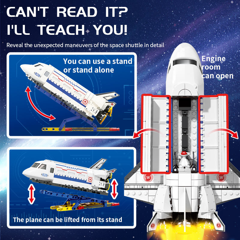 Set di Blocchi da Costruzione Navetta Spaziale Woma Factory, Modello di Astronave con Supporto Espositivo, Giocattolo Educativo STEM per Bambini (C0828)