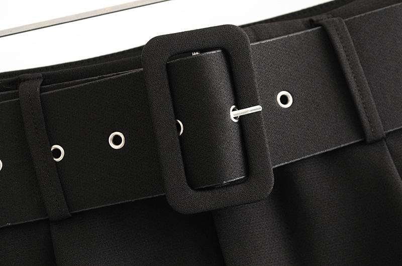 Woman High Waist Black Suit Pants Office Ladies Belted Straight Leg Slacks Trousers