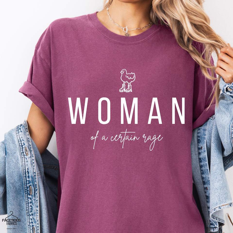 T-shirt da donna Woman Of A Certain Rage, t-shirt casual in cotone a maniche corte con scollo rotondo e stampa di lettere per tutte le stagioni