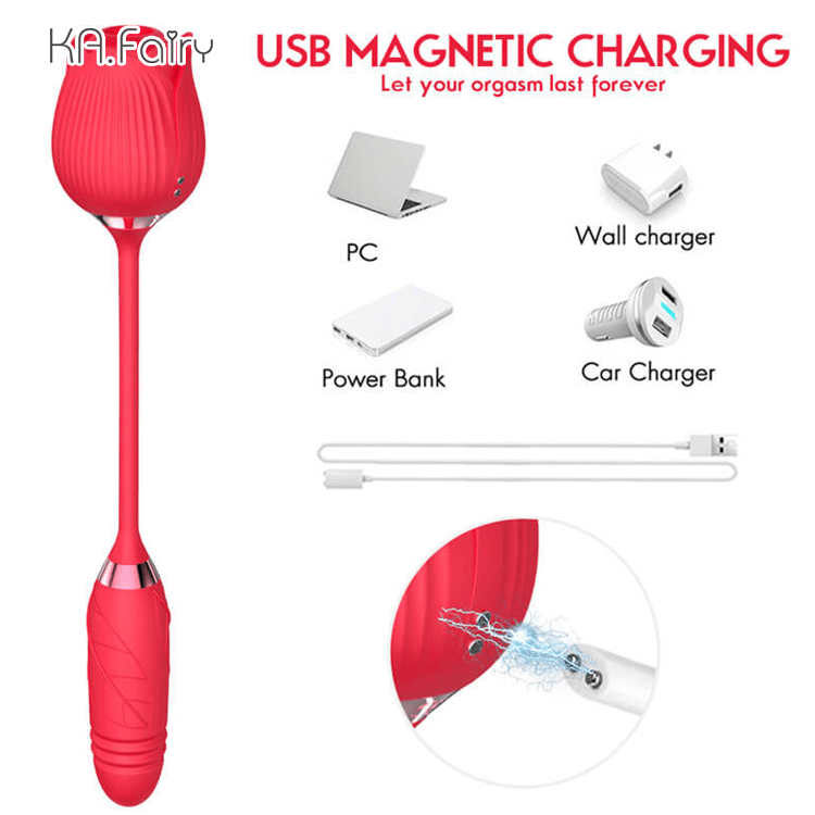 Giocattolo a Forma di Rosa per Donna con Dildo Pulsante, Aspiratore Clitorideo a Fiore di Rosa con Lingua ed Estensione, Vibratore Dildo in Silicone, Sex Toy