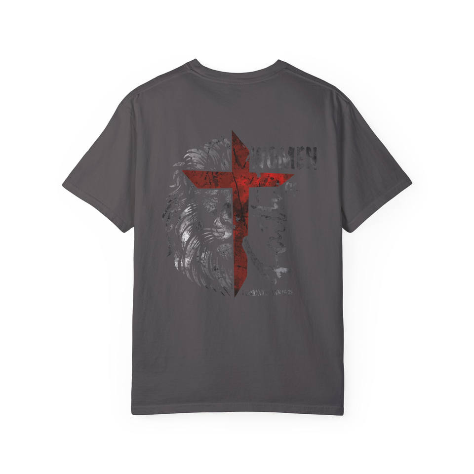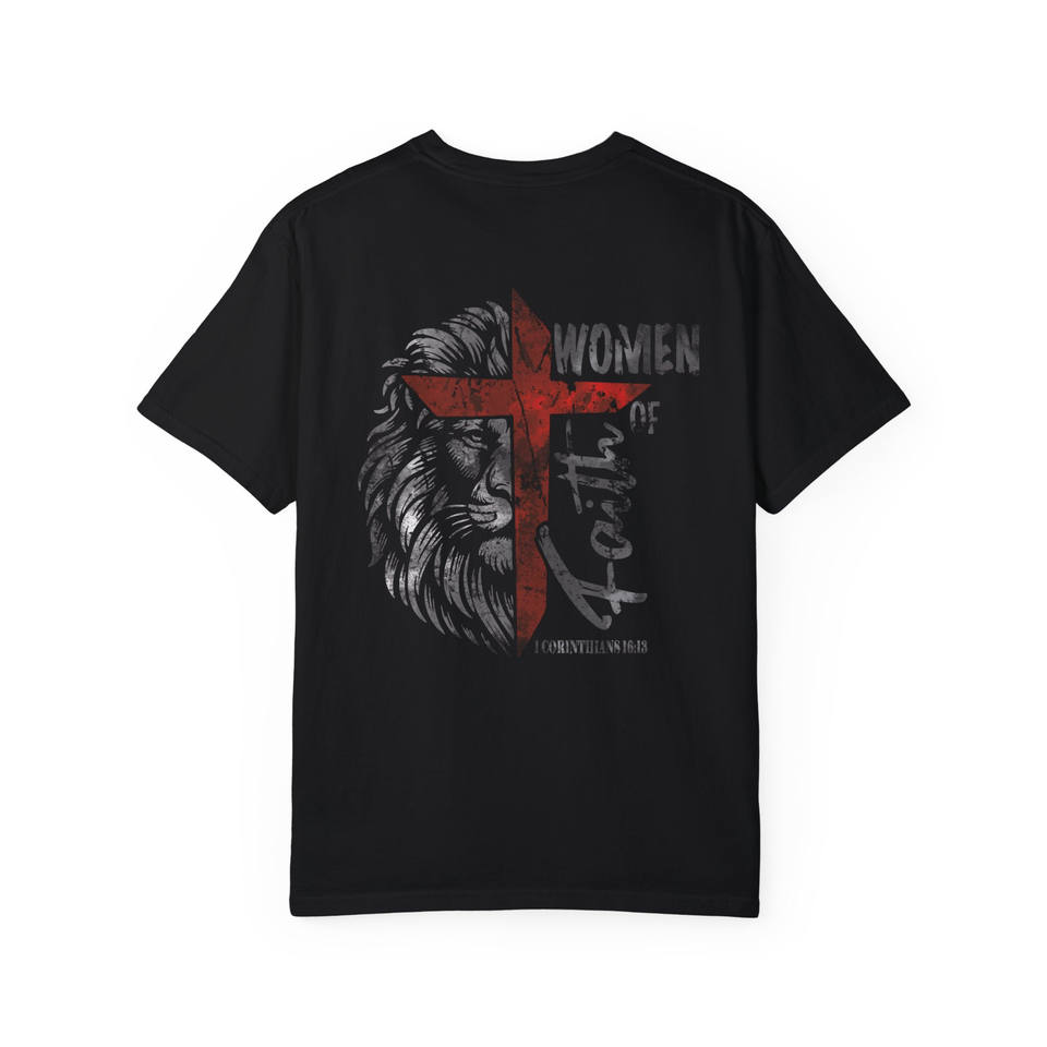 Woman of Faith – 1 Corinthians 16:13 Lion & Cross Unisex Garment-Dyed T-Shirt