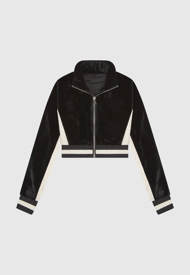 Completo da Donna in Velluto a 2 Pezzi con Zip, Tuta in Poliestere con Vita Elasticizzata, Top Corto e Pantaloni Jogger in Velluto