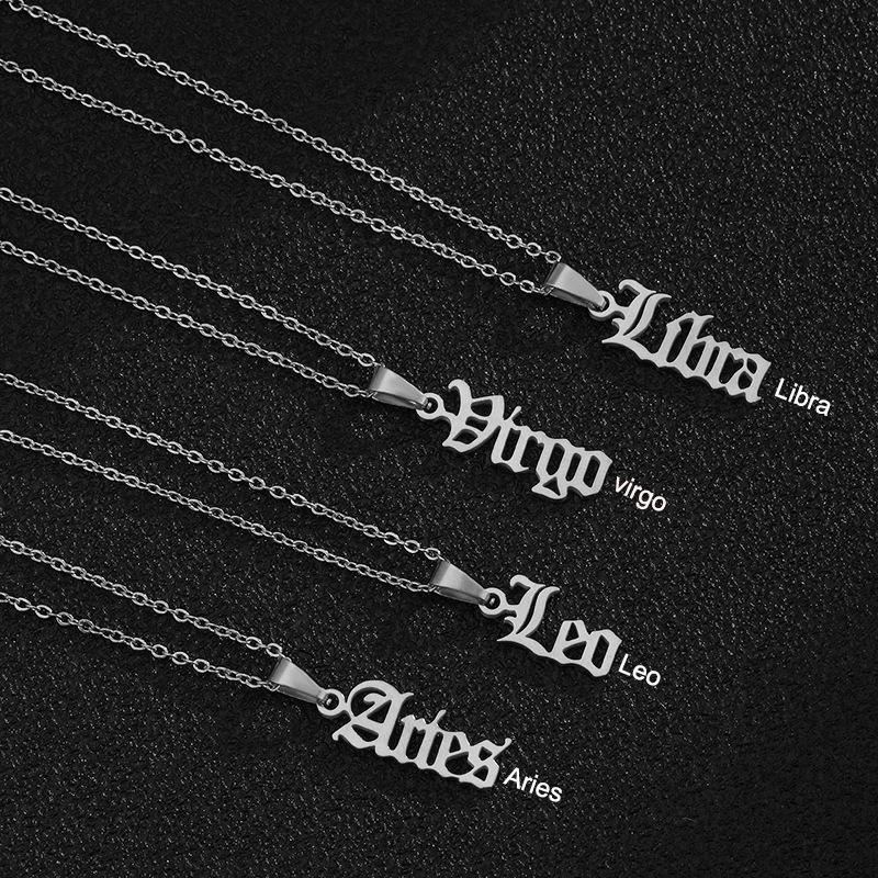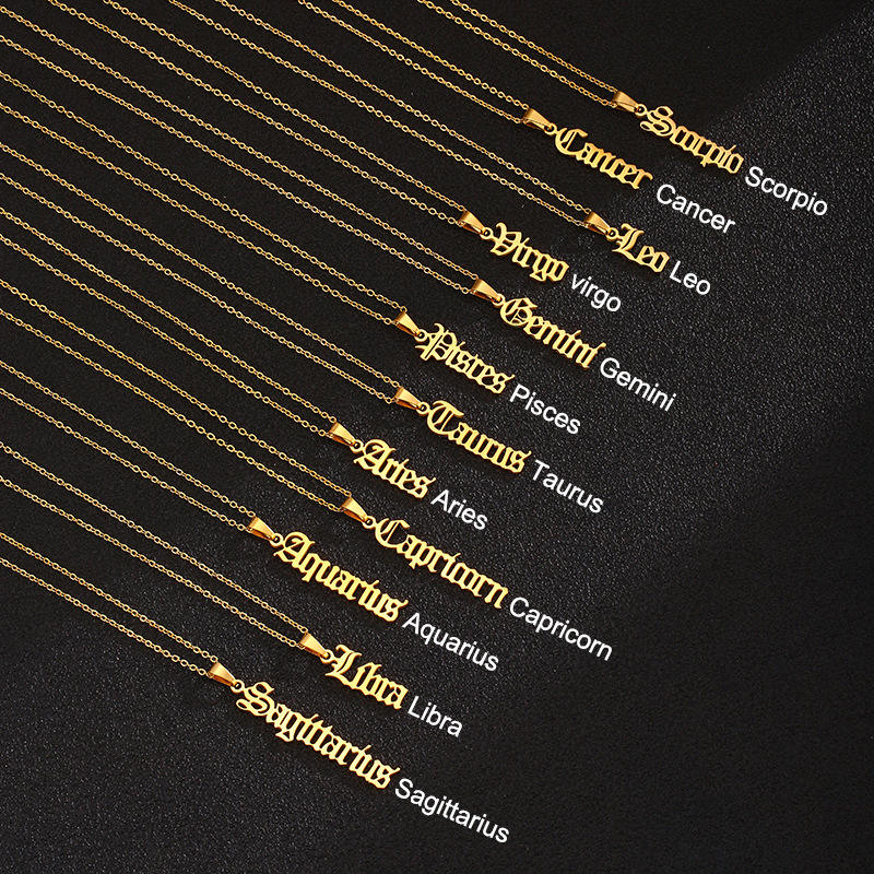 Women Astrology Horoscope Non Tarnish Jewelry Gold Plated Zodiac Sign Pendant Necklace Kolye