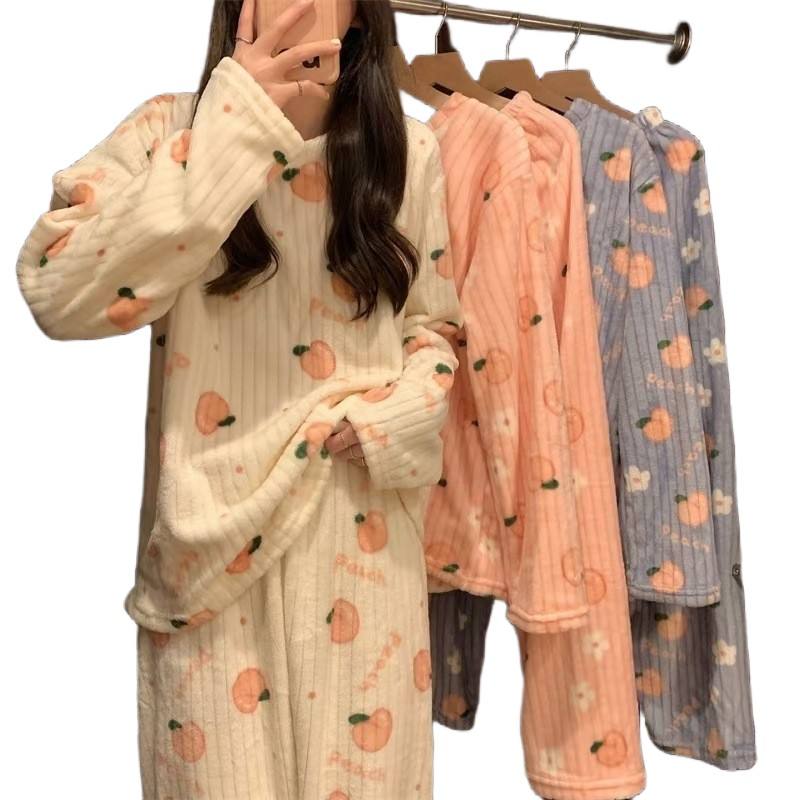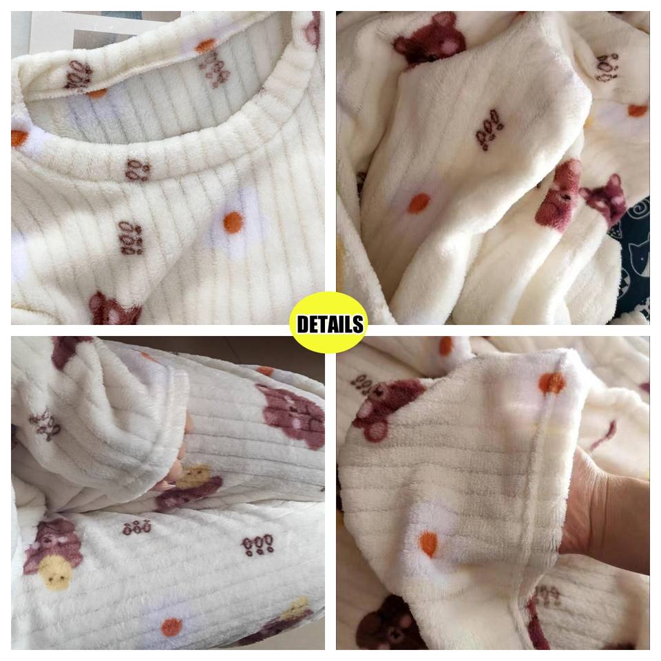 Women Autumn Winter Warm Pajamas Fleece Thick Sleepwear Sets Long Sleeve Cartoon Print Female Cute Pajamas Suit