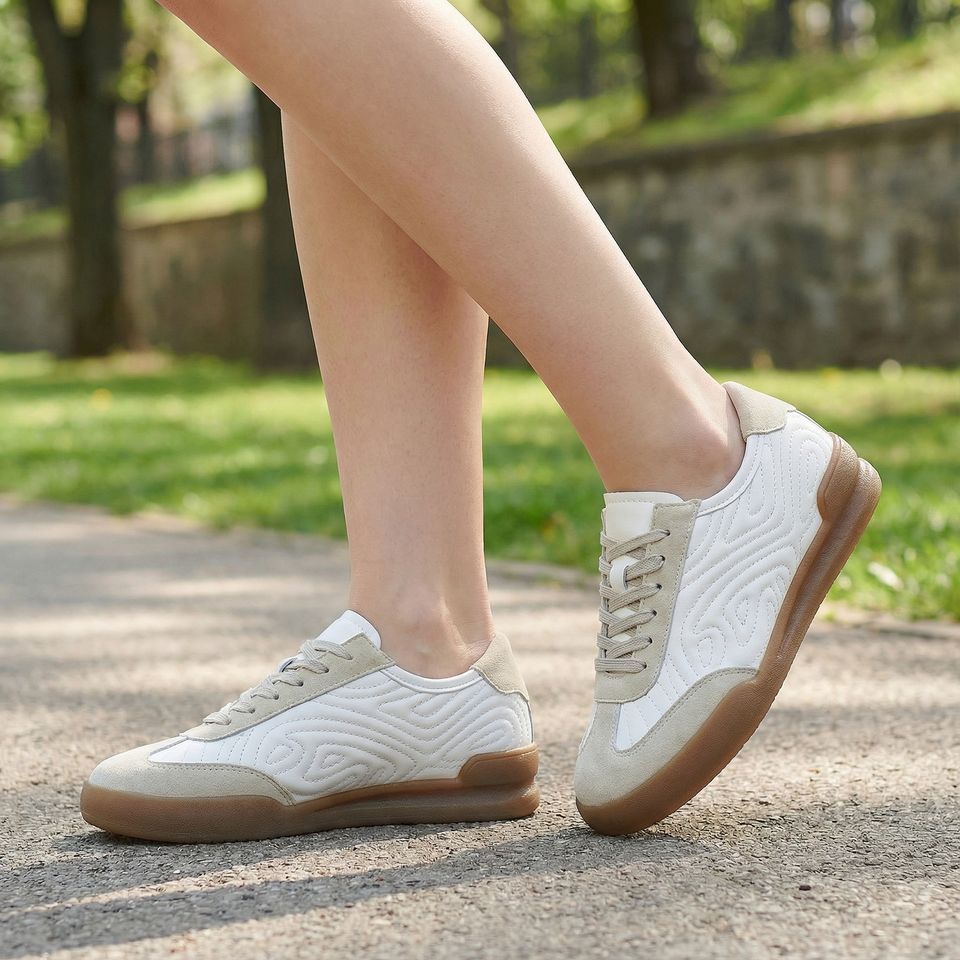 Women Beige White Retro Casual Sneakers Lightweight Office Casual Footwear Comfortable Outdoor Shoes