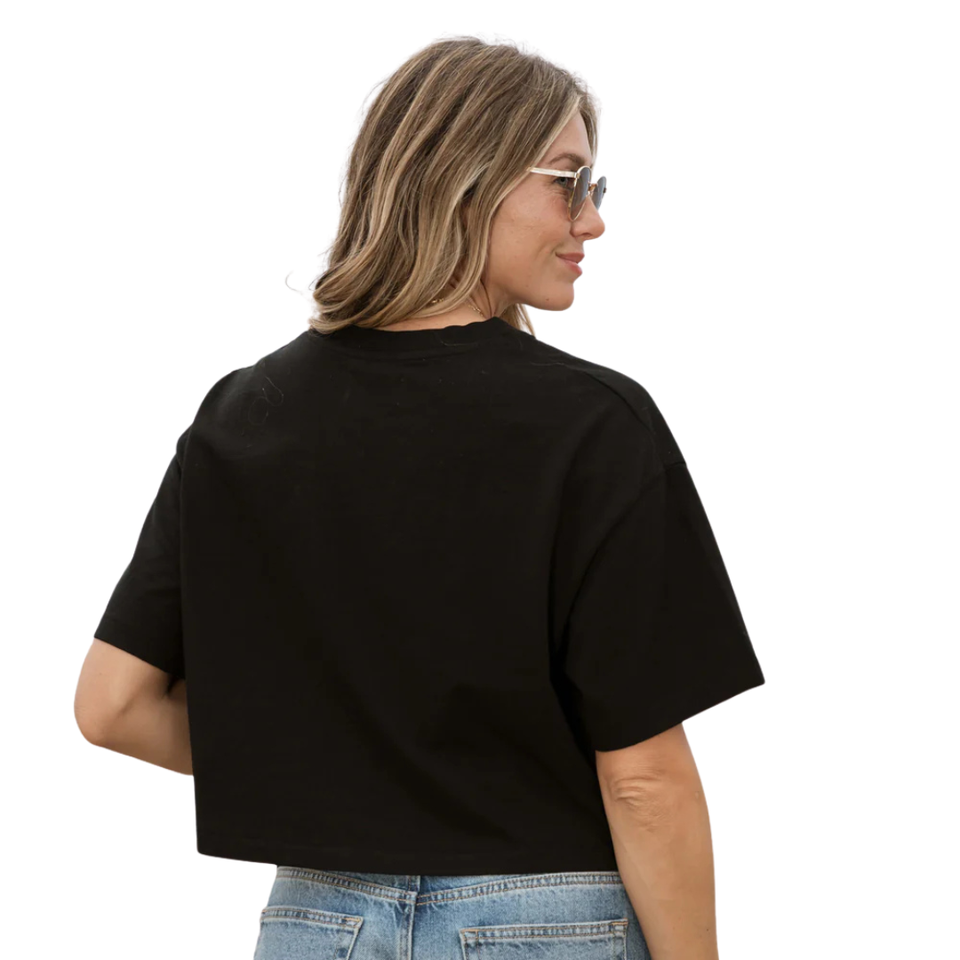 Women Black Boxy Crop Heavyweight Tee 100% Luxury Organic Cotton Pre Shrunk GOTS Certified Premium Durable Relaxed Fit T Shirt
