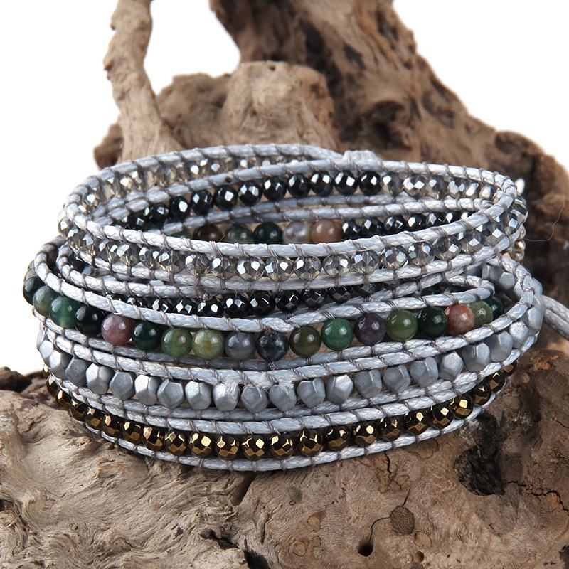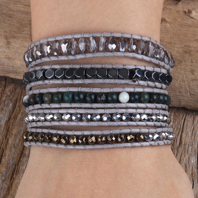 Women Bohemian Custom Handmade Jewelry African Turquoise Pearl Natural Gemstone Crystal Glass Hematite 5 Strand Wrap Bracelet