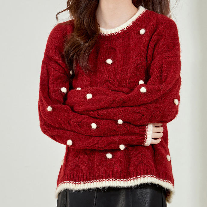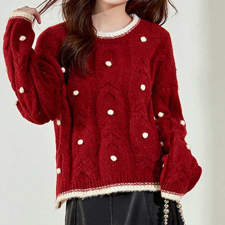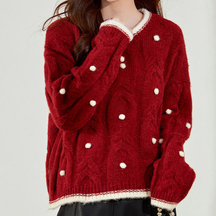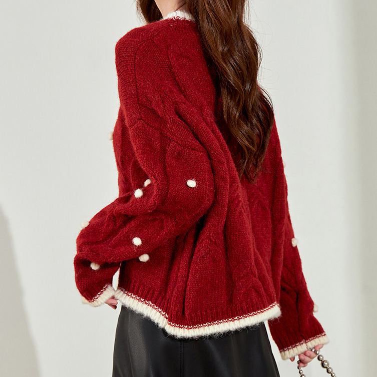 Maglione Borgogna a Trecce con Pon-Pon per Donna - Top Retrò e Carino