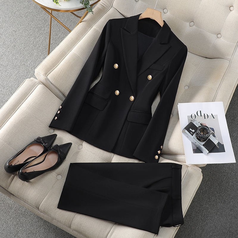 Women Business Trouser Suit Office Lady Business Suit Set Solid Pattern Two-Piece Blazer Pants Business Formal Women Pants Suits