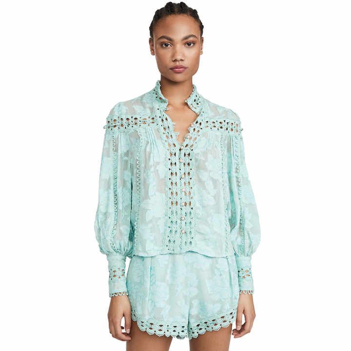 Camicetta a maniche lunghe con pieghe in Chiffon da donna