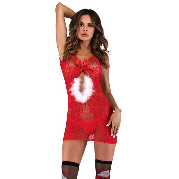 Women Christmas Sexy Lingerie Hairy Underwear Babydoll Bodystocking Fishnet Dress