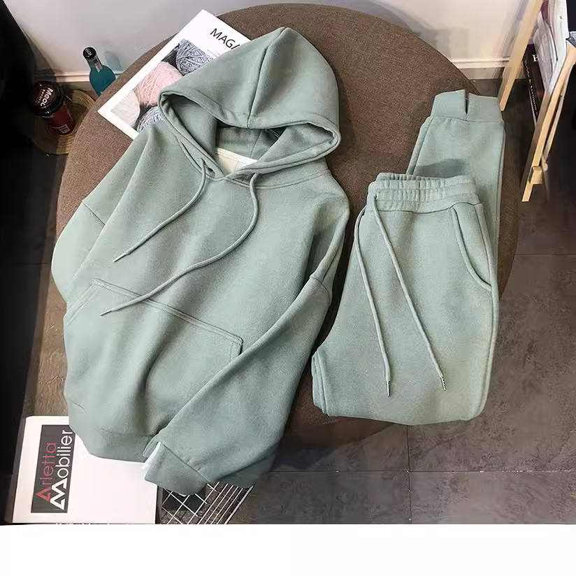 Women Clothing Winter 2 Piece Set Casual Tracksuit Hoodie Jumper Trousers Letter Printed Loose Hooded Fleece Sweatshirt