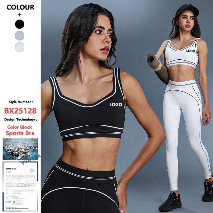 Women Color Block Sport Yoga Gym Running Workout Fitness Padded Bras High Impact Support Activewear Tank Crop Top Sports Bra