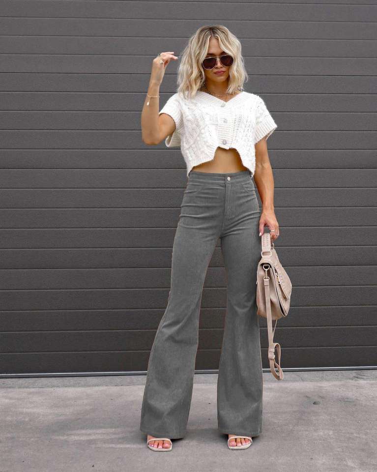 Women Corduroy Flared Pants Long Fashion Trousers Solid High Waisted Ladies Casual Pants Girls Blank Pants