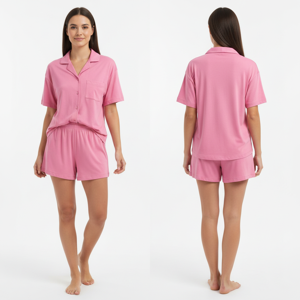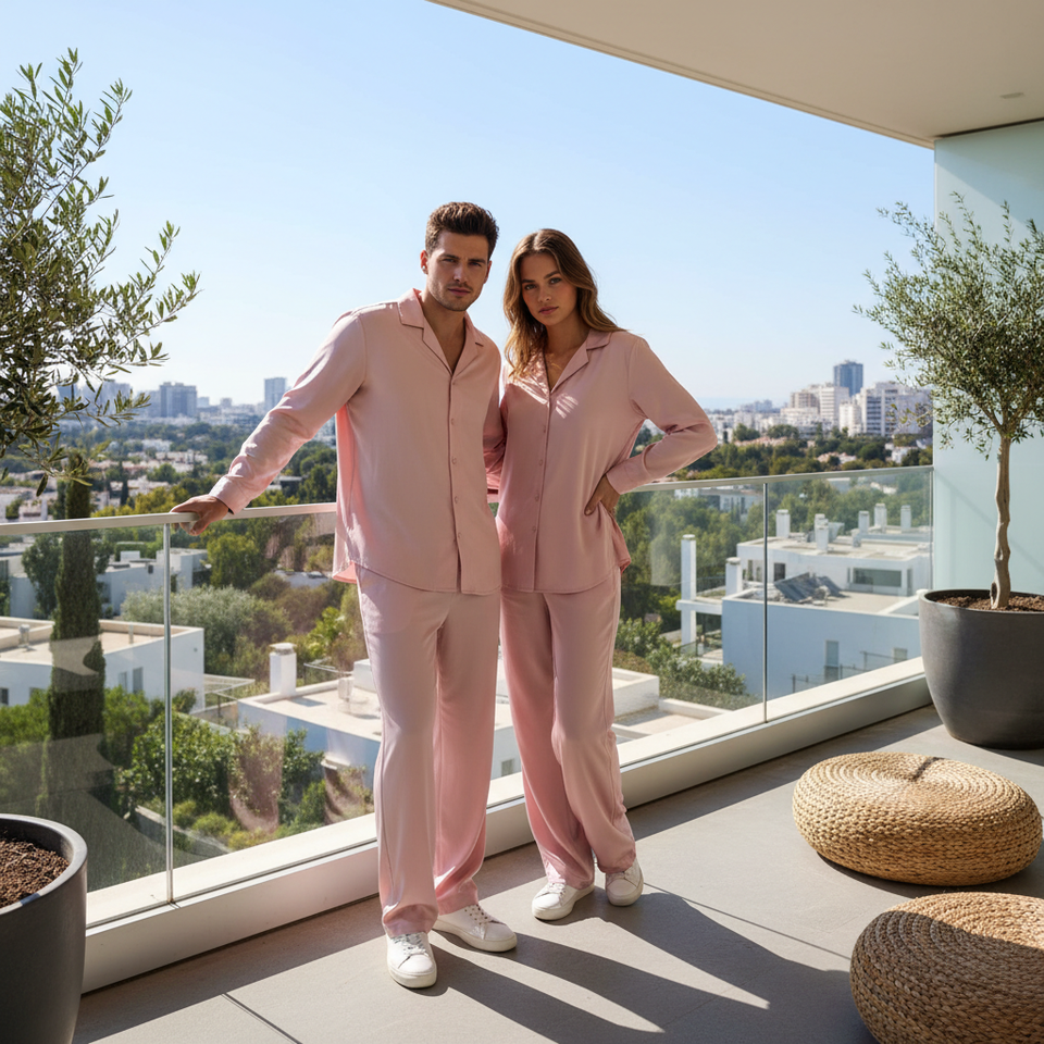 Women Cotton Pajama Set Unisex Light Pink Satin Pajama Set Shirt Pants Couple Matching Loungewear Men's and Women's Pajamas