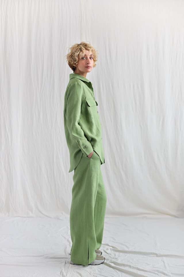Completo da donna elegante in due pezzi Top da donna e pantalone elasticizzato in vita vestito verde signora