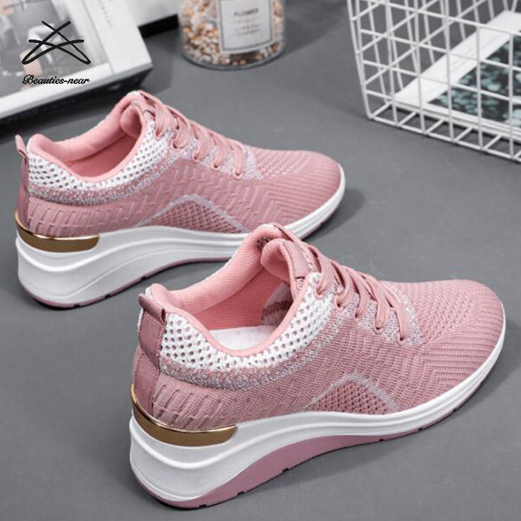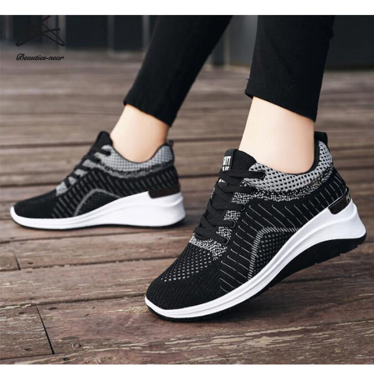 Women Fashion Casual Shoes Classic Lace up High Heel Walking Sneaker Ladies Running Sneaker Shoes