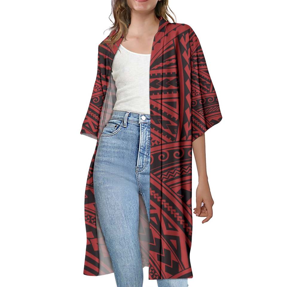 Women Fashion Clothes Styles Hawaii Polynesian Red/White Tribal Print Women's Cardigans Causal Outwear Custom Women Clothes