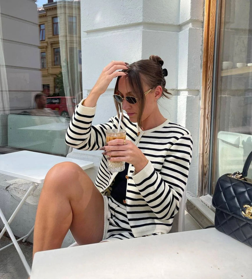 Set di Shorts Patchwork a vita alta Cardigan stampato Zebra alla moda da donna abiti in maglia a righe con 2 pezzi