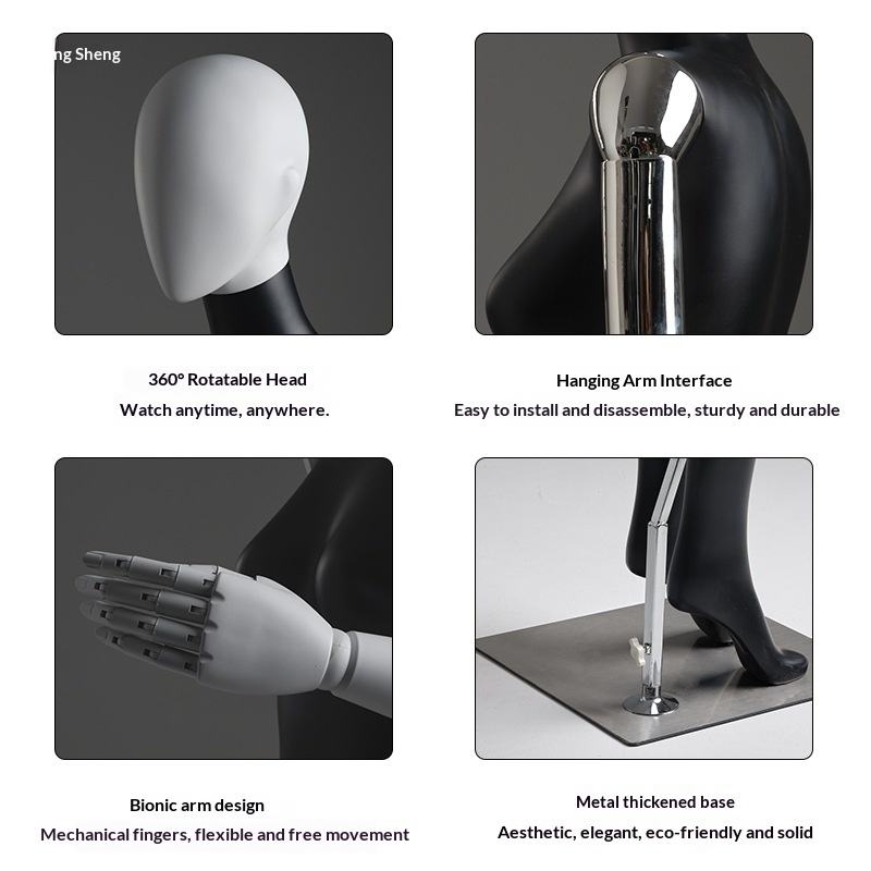 Women Full Body Fiberglass Display Mannequin Flexible Standing Pose Electroplated Black Gold Silver Flat Shoulder Apparel