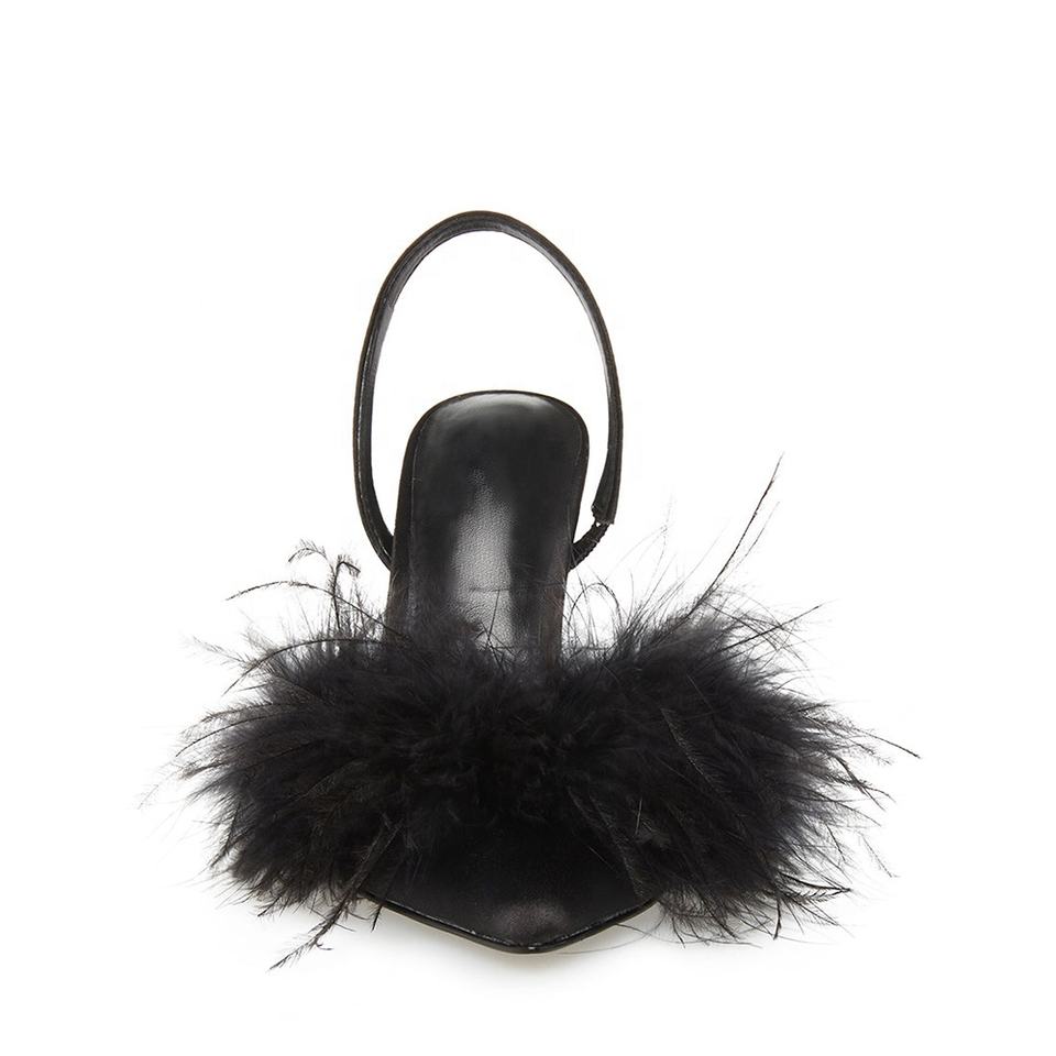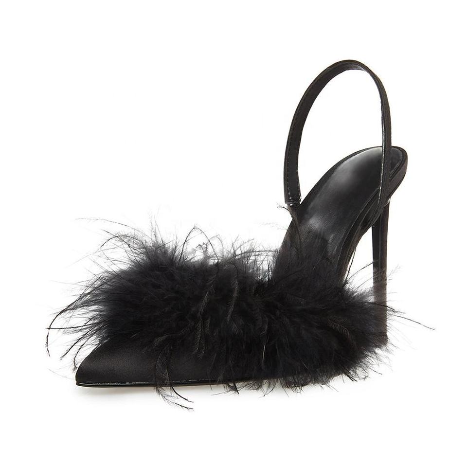 Décolleté con tacco alto da donna scarpe tinta unita punta a punta Slingback sottili tacchi alti piume Plus SIze scarpe di lusso