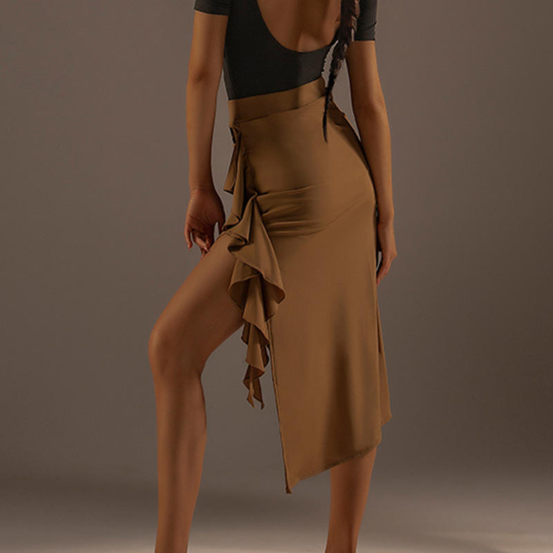 Women High Waist Slit Latin Dance Skirt Sexy Backless Top Rumba samba Chacha tango Dress Performance Costume for Dancing