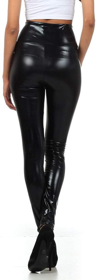 Women High Waisted Shiny Faux Leather Wet Look Leggings