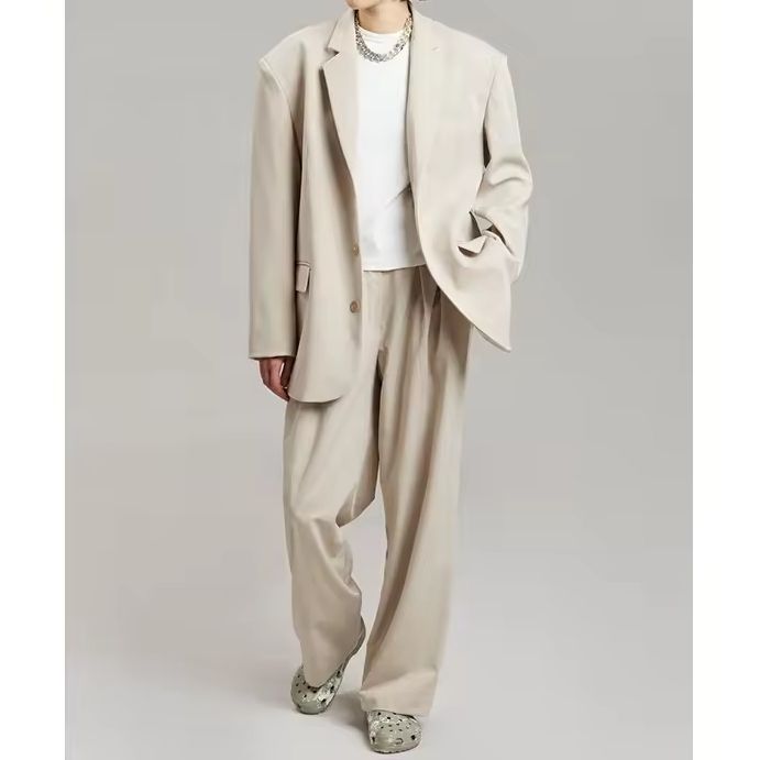 Giacca da donna Beige a medio peso vestibilità oversize Silhouette imbottita sulle spalle con patta tasche anteriori con bottone sul davanti blazer oversize