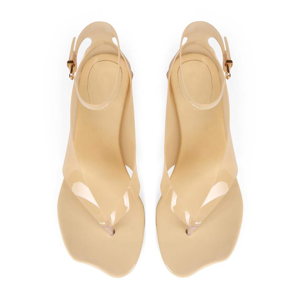 Women Jelly Thong Heeled Sandals Clear Flip Flop Low Kitten Heels Square Open Toe Strappy Beach Adjustable Buckle Dress Sandals