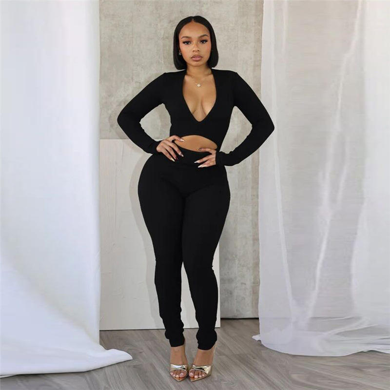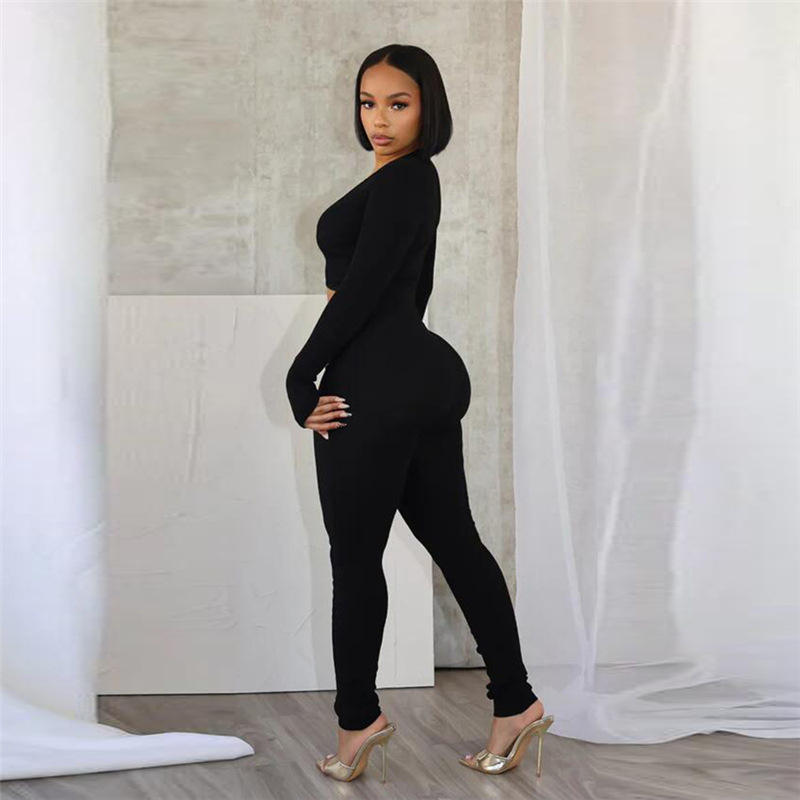Tute da donna e tutine tinta unita con scollo a V pagliaccetti a maniche lunghe pantaloni da donna