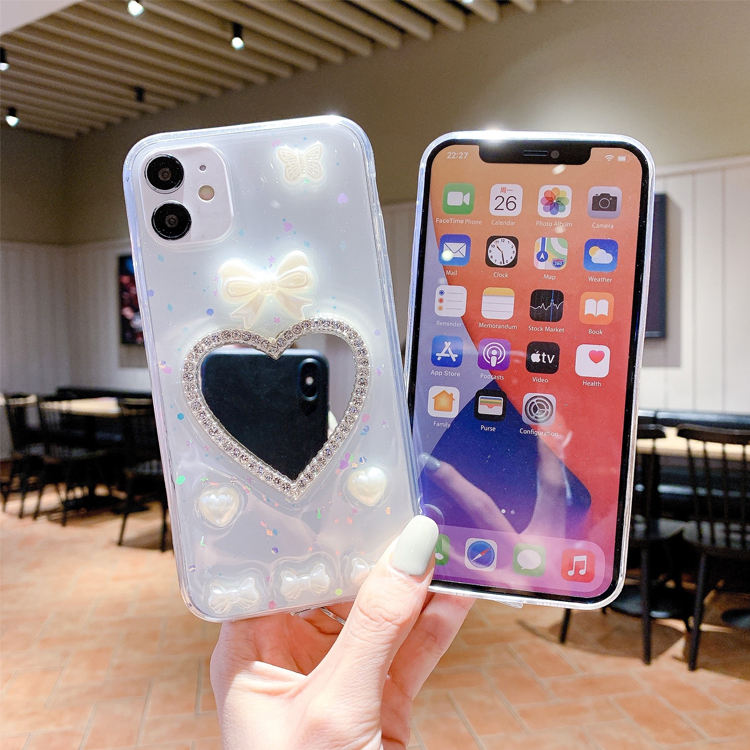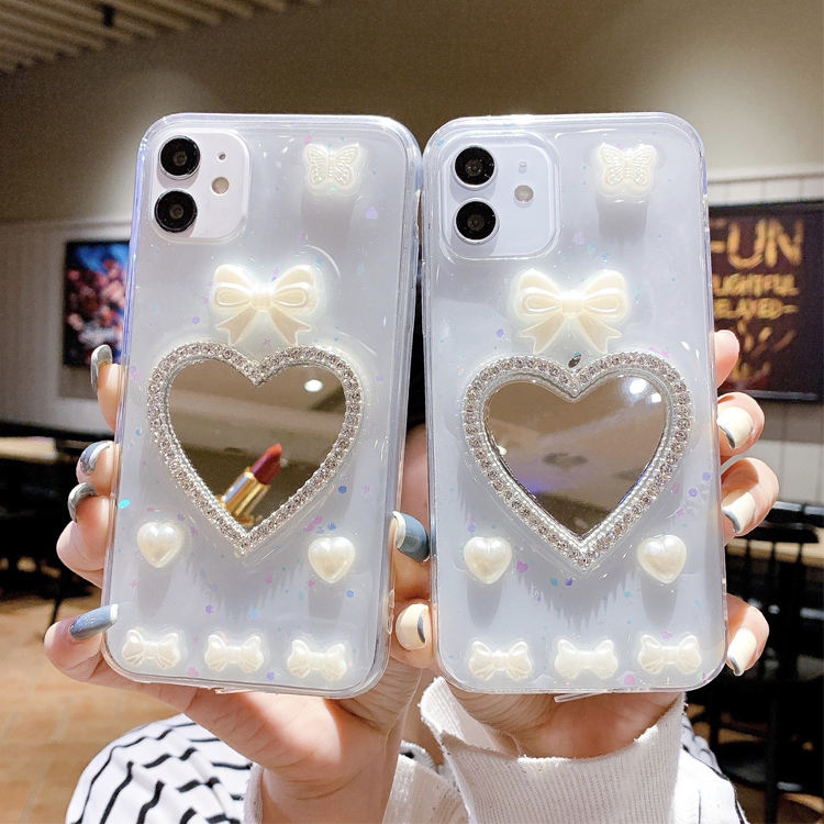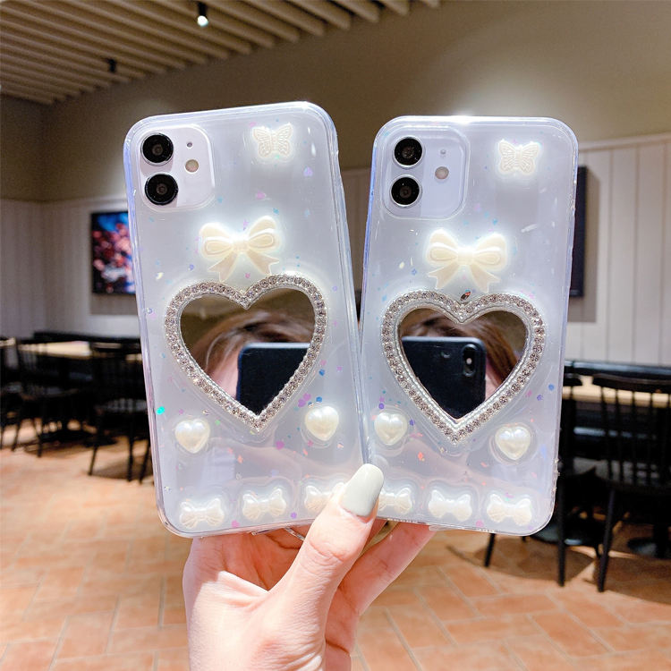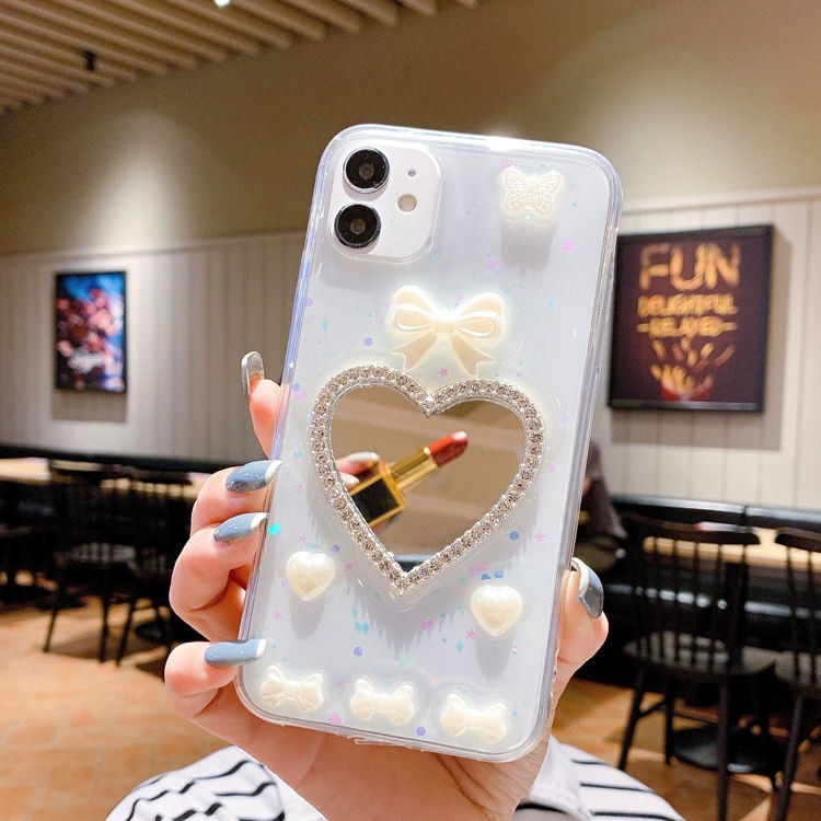 Women Lady Favorite Bowknot Pearls clear Luxury Lady Mirror Make up Phone Cover Pc case for xiaomi Redmi Note 8 Pro