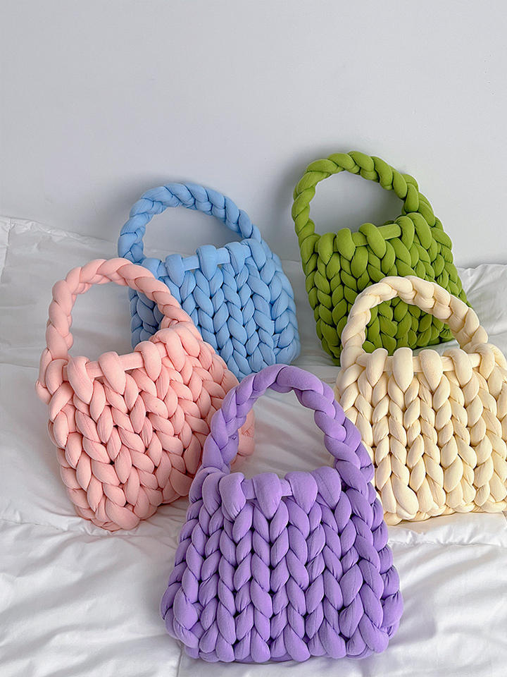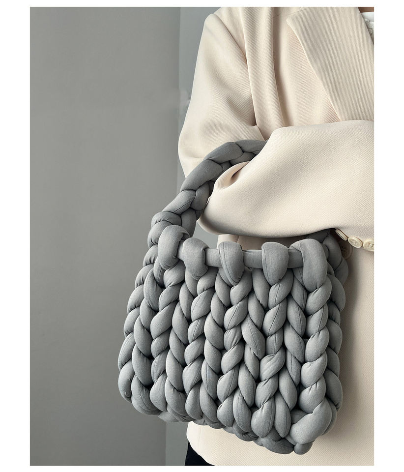 Borsa da Donna Leggera Morbida e Confortevole di Lusso Lavorata a Maglia Grossa con Filato Spesso all'Uncinetto Fatta a Mano Intrecciata