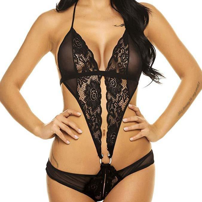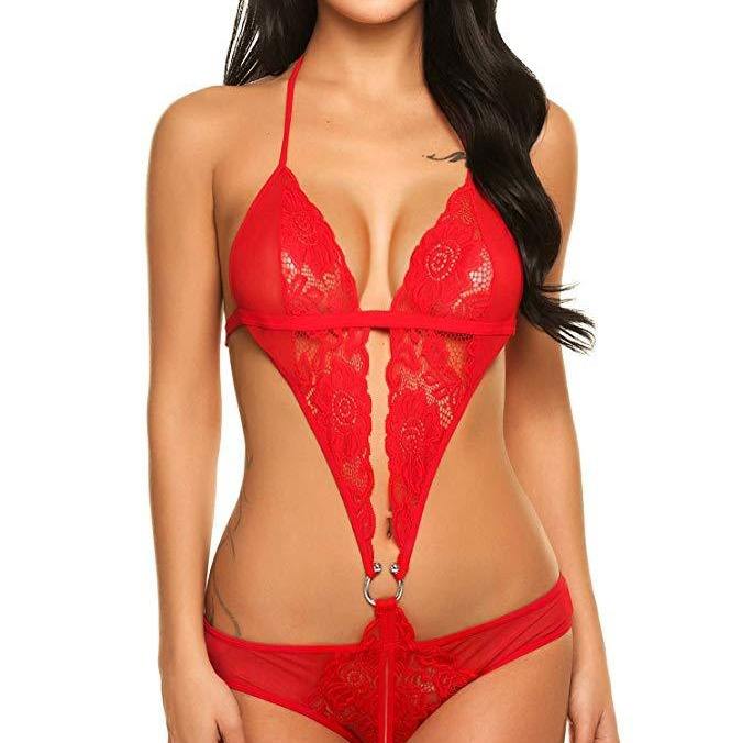 Set Lingerie da donna body Babydoll con cinturino in pizzo orsacchiotto con reggicalze