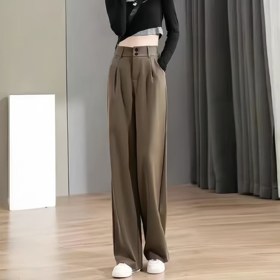 Women Long Pleated Suit Pants High Waist Double Button Pockets Loose Trousers Spring Summer Lady Wide Leg Formal Pants