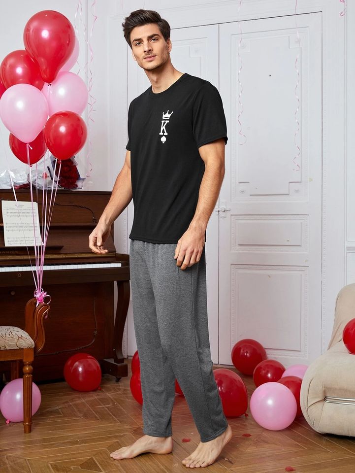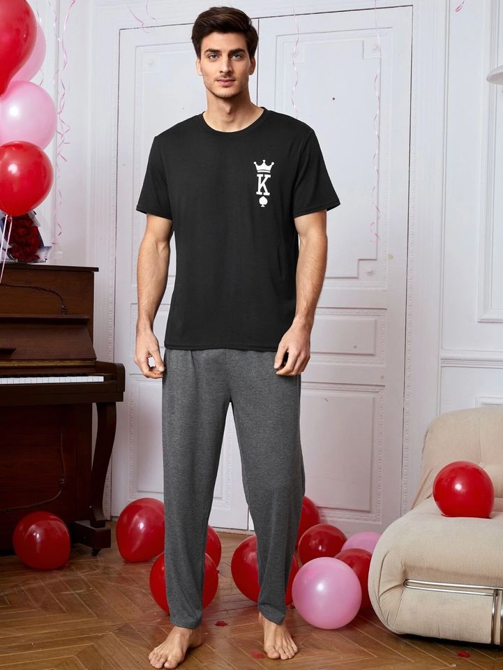 Nome del prodotto:Set Pigiama per Coppia con Maglia e Pantaloni da Notte Card Print