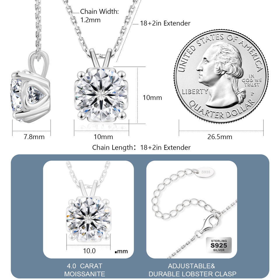 Women Moissanite Pendant Chain 1-4 Carat Lab Created Mossanite Solitaire Sterling Silver Heart Shaped Back Moissanite Necklace
