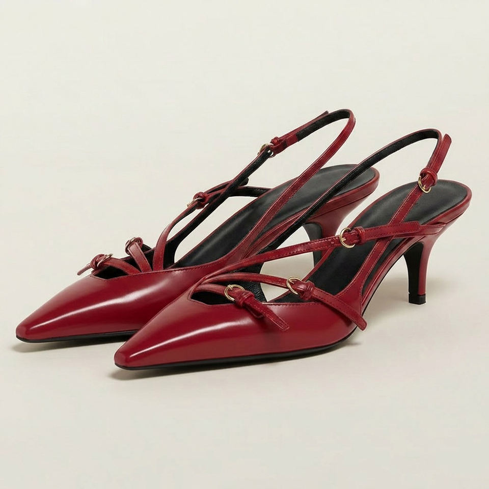 Scarpe da Donna con Tacco Basso a Gattino, Multi-Fascia Dorata, Slingback, Punta Affusolata, Tomaia Aperta, Vendita all'Ingrosso OEM