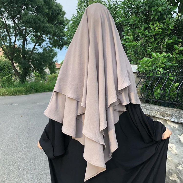 Muslim Two Layer Jazz Khimar Long Prayer Hijab Islamic Clothing