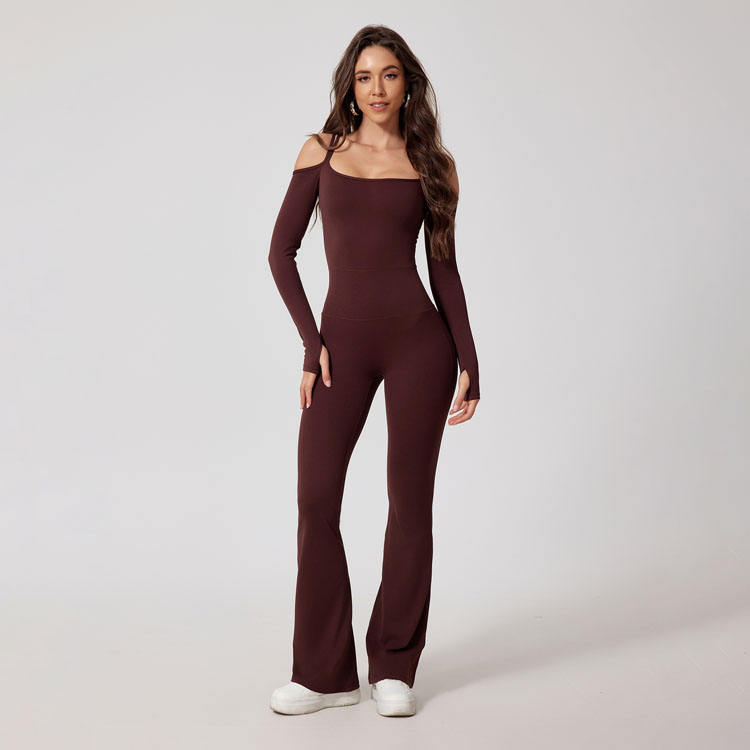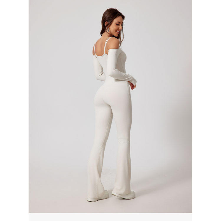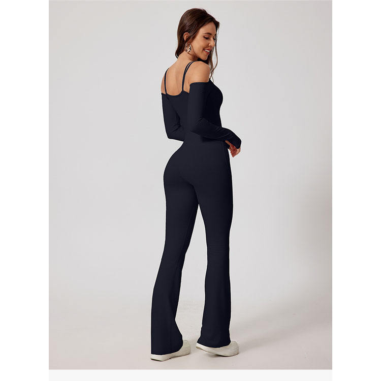 Tuta da donna nuova senza schienale con spalle scoperte Sexy costume intero a maniche lunghe pantaloni svasati tuta Yoga