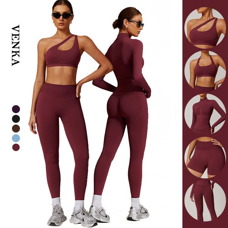 Women New Style Custom Gym Fitness Suit High Waist Leggings Elastic Bra Shirt Slim Jacket Shorts Pants 2 Piece Female Yoga Sets