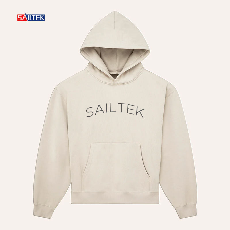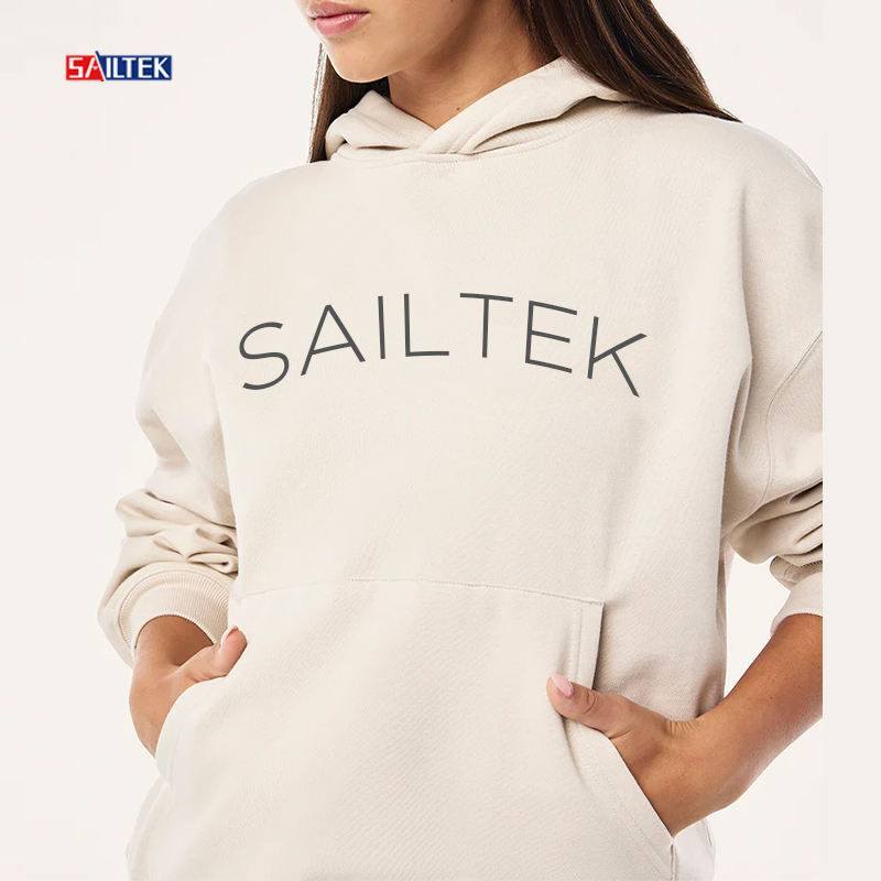 Women Oversized Hoodie Beige Pullover Custom Embroidered Casual Streetwear Heavyweight Fleece Hooded Sweatshirt